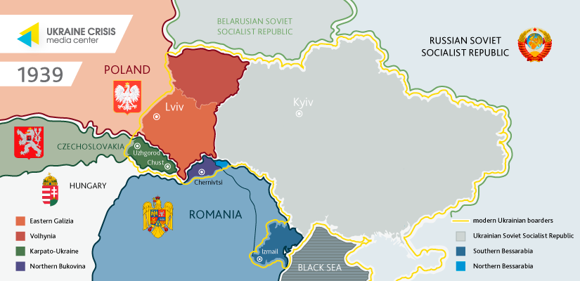 | 1945 | Για πρώτη φορά πρακτικά όλα τα εδάφη της Ουκρανίας βρίσκονται σε ένα κράτος. |