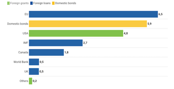 Πηγή: Ουκρανικό υπουργείο οικονομικών [άλλες – Γερμανία, Ισπανία, Φιλανδία, Ιρλανδία, Ελβετία, Βέλγιο, Ισλανδία, Εστονία]