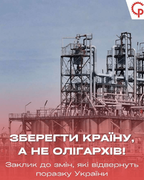 2. Επιβολή κρατικού ελέγχου σε επιχειρήσεις σε στρατηγικούς τομείς της οικονομίας και ανάπτυξη μαζικής παραγωγής για τις ανάγκες του πολεμικού μετώπου. Η βιομηχανία πρέπει να λειτουργεί προς το συμφέρον της άμυνας και να μην υπόκειται στις μεταβαλλόμενες συνθήκες της αγοράς. Επιστροφή κρίσιμων δομών και κρίσιμων υποδομών στο κράτος. Η πρόσβαση σε βασικά αγαθά δεν πρέπει να γίνει βορά των ολιγαρχών και μέσο απομύζησης των κρατικών κερδών που περνάνε στις τσέπες των μονοπωλίων. Η διατήρηση της DTEK [ουκρανική εταιρεία ενέργειας] στα χέρια του Rinat Akhmetov ή των περιφερειακών εταιρειών διανομής ηλεκτρικής ενέργειας σε αυτά του Vadym Novynskyi συνιστούν μια αδικαιολόγητη γενναιοδωρία του κράτους προς όφελος των ολιγαρχών!